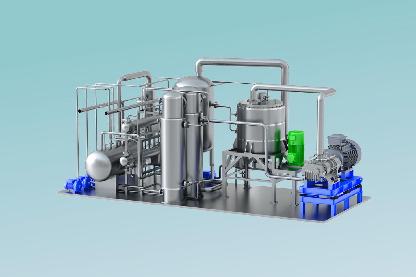 了解詳情MVR熱泵精餾系統以高效旋轉精餾床為基礎,利用離心力場代替重力場,強化相與相之間的相對速度和相互接觸,通過強化傳質傳熱來提高分離效率縮小設備體積。 通過在系統中引入適用于小流量、大壓比的螺桿式蒸汽壓縮機,即可實現MVR循環(huán)熱泵精餾。